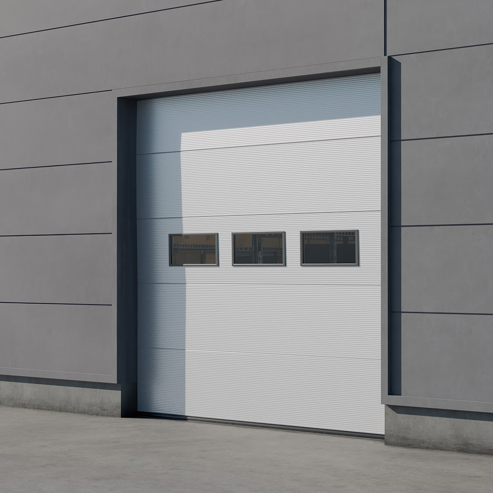 Een basis industriële sectionaalpoort, ontworpen voor plaatsen & projecten waar een basis poort aan interessant budget noodzakelijk is.